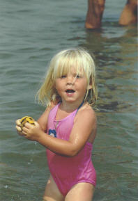 På ferie med Bedstefar og Farmor på Marielyst - det er fedt, men trættende at bade!